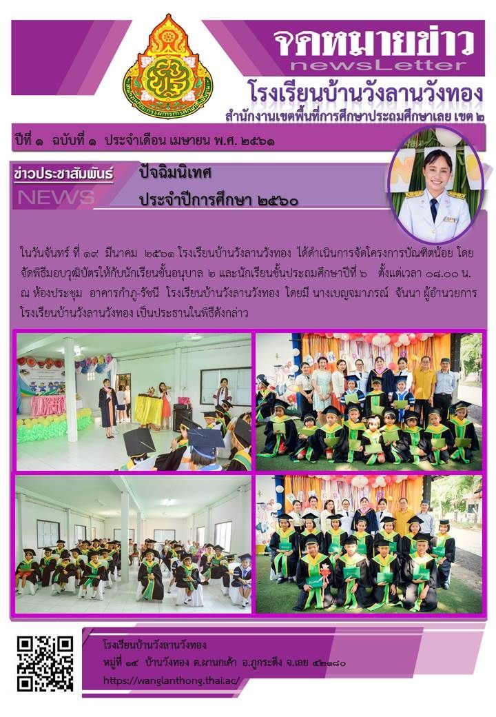 จดหมายข่าว ฉบับที่ 1 ปี 61 ประจำเดือน เมษายน 2561