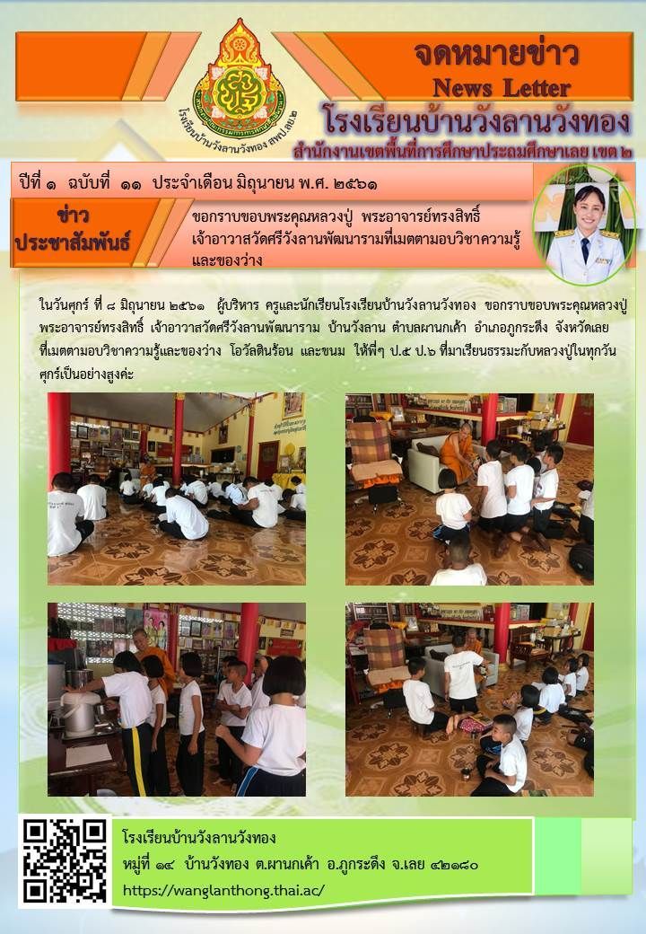 จดหมายข่าว ฉบับที่ 11 ปี 61 ประจำเดือน มิถุนายน 2561