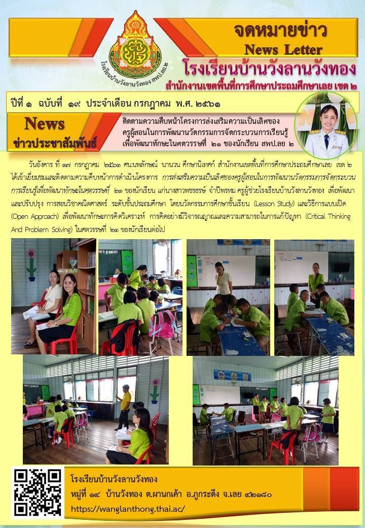 จดหมายข่าว ฉบับที่ 19 ปี 61 ประจำเดือน กรกฎาคม 2561